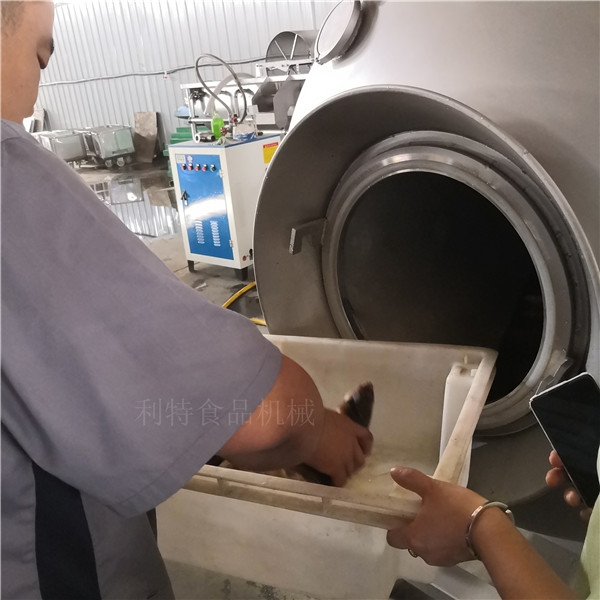 董總經(jīng)營著一家肉食品加工廠,上新的產(chǎn)品,根據(jù)自己的加工工藝需求,需要將產(chǎn)品進行真空腌制。由于之前沒用過真空滾揉機,為保障自己的產(chǎn)品質(zhì)量達標,也同時想驗證一下使用真空腌制對產(chǎn)品有什么樣的提高,因此從青島帶著自己的原料來公司現(xiàn)場試機。現(xiàn)場試機也是想看一下使用設備后的效果,而且是比較直觀的看到設備的操作流程以及設備運行的一些相關事宜。