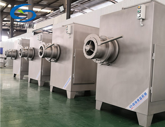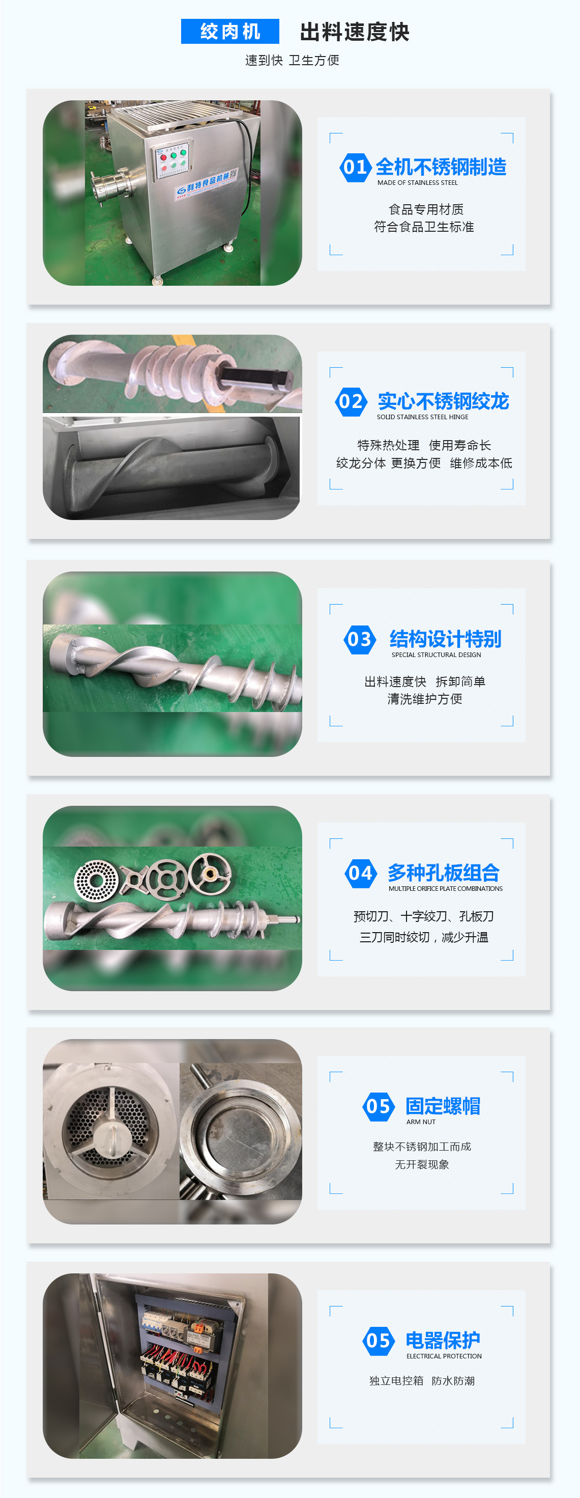 產(chǎn)品規(guī)格:100/120/250絞肉機(jī)原理:依靠螺桿將料斗箱中的原料肉推到預(yù)切板處,通過(guò)螺桿的旋轉(zhuǎn)擠壓使孔板與絞刀產(chǎn)生相對(duì)運(yùn)轉(zhuǎn),從而將物料肉切成顆粒狀,確保了肉餡的均勻性。它可將塊狀肉(凍肉)及食品絞至φ6-φ16mm的顆粒,是肉類制品加工的必用設(shè)備。