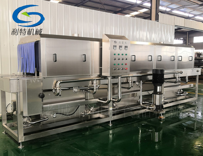 3、漂洗段:將筐子表面殘留的污漬漂洗掉,達(dá)到表面無(wú)殘留,同時(shí)對(duì)筐子消毒殺菌。