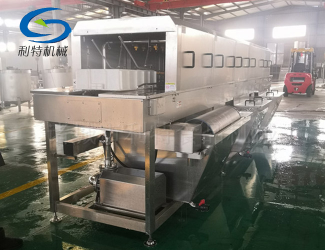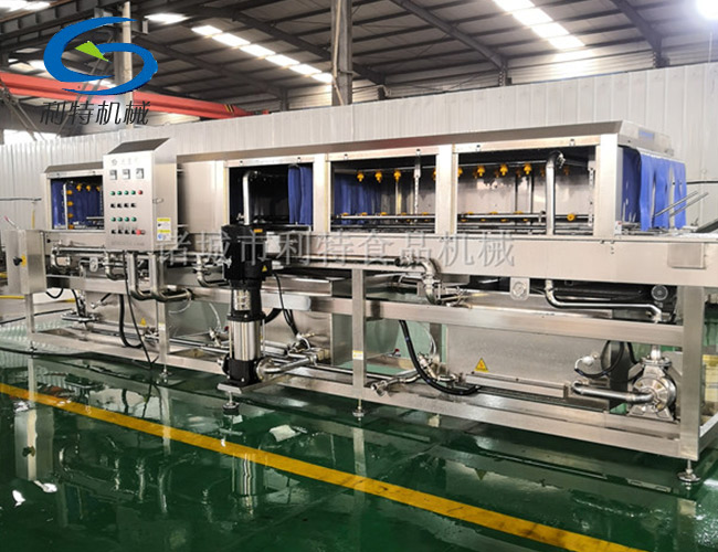 3、漂洗段:將筐子表面殘留的污漬漂洗掉,達(dá)到表面無(wú)殘留,同時(shí)對(duì)筐子消毒殺菌。