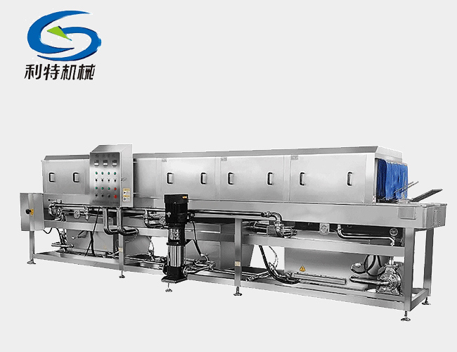 3、漂洗段:將筐子表面殘留的污漬漂洗掉,達到表面無殘留,同時對筐子消毒殺菌。