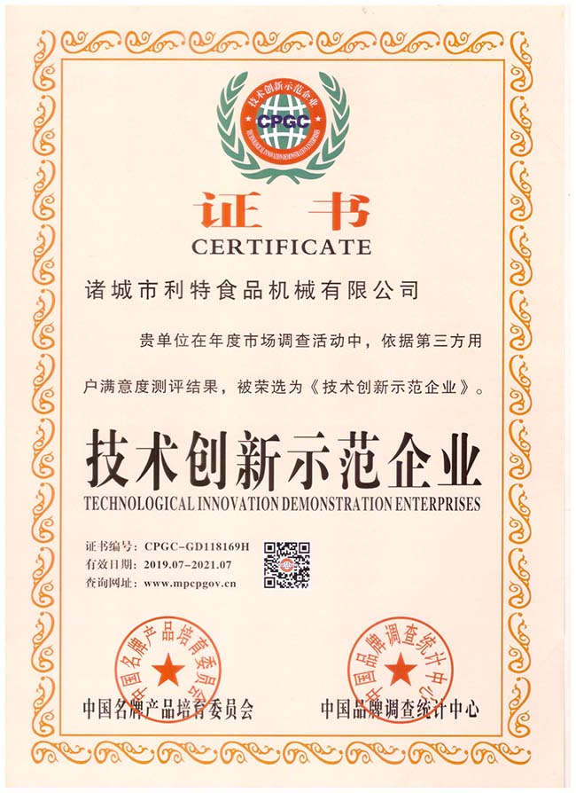 技術(shù)創(chuàng)新示范企業(yè)證書